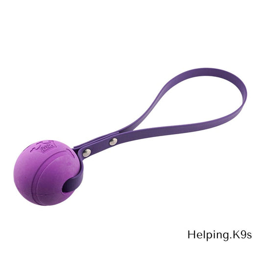 Ball on BioThane® Tug Toy – Dog Engagement & Reward Toy, Chew King® Ball with BioThane Handle, Waterproof & Durable, Handmade in USA