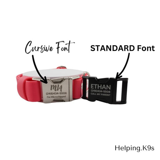 Add Name and Number to my Quick Release Buckle Add-On, Engraving Add-On, Dog Tag Add-On